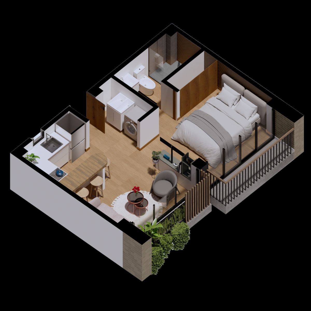Apartamentos de 1 alcoba y 1 baño.